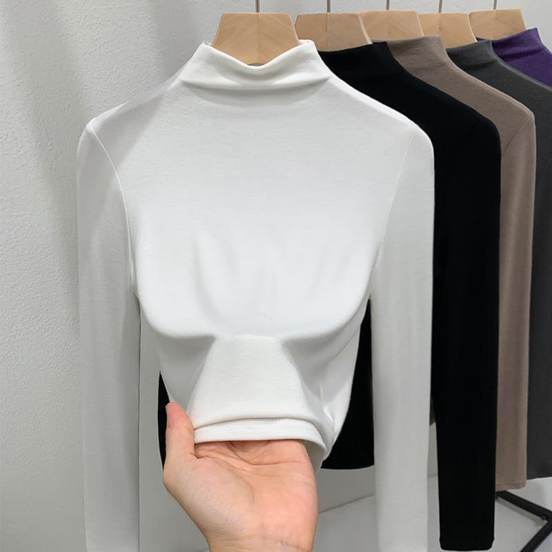 Semi-turtleneck Bottoming Shirt Women's Autumn and Winter New Women's Clothing Design Sense Long-sleeved Inner Shirt Pleated Waist Top