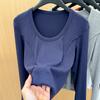 Simple Front Shoulder Long-sleeved T-shirt Women's Spring New Women's Clothing Slim-fit Round Neck T-shirt Fish Bone Waist Top