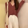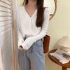 Large Size Women's Spring and Autumn Knitted Cardigan, White Bottoming Shirt, Long-sleeved Versatile Fat Mm Belly-covered V-neck Shirt