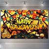 1pc Happy Halloween Party Backdrop Night Skeleton Hand Pumpkin Bats Dustproof Banner for Halloween Party Background Decoration