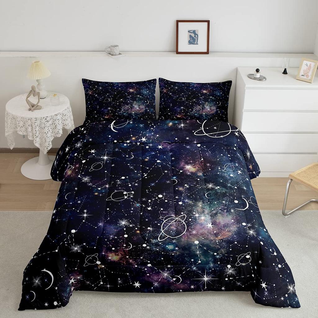 Galaxy Comforter Sets, 3D Outer Space Themed Bedding, All-Season Quilted Duvet, for Children Boy Girl Teen Kids with Pillow Sham
