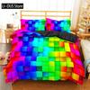 Toy Print Duvet Cover Set Square Gradient Blocks Bedding Set For Kids Teen Colorful Bricks Game Queen Microfiber Comforter Cover