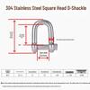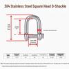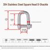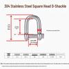 304 Stainless Steel D-Type Square Head Marine Lifting Shackle for Wire Rope Connection