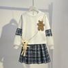 Girls' Sweater Suit Dress Net Celebrity College Style Spring and Autumn Two-piece Skirt Little Girl Western Style Plaid Skirt