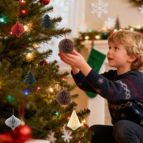 Yousheng Christmas Paper Honeycomb Ornaments for Tree 3D Paper Honeycomb Lantern with Glitter Edge for Vintage Neutral Christmas Party Home Decor