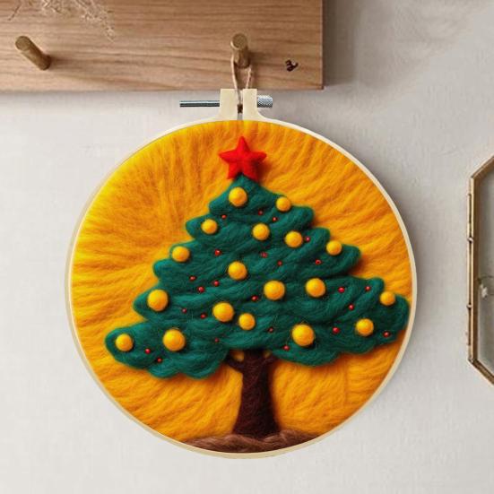 Yousheng Christmas Needle Felting Kit Holiday Felt Painting Set for Beginners Starter Needle Felting DIY Craft Kit with Pad Needles Wool Decorative