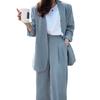 2 Pcs/Set Lady Formal Coat Pants Set Long Sleeves Open Stitch Cardigan Mid Length Jacket Loose Straight Wide Leg High Waist Trousers Formal