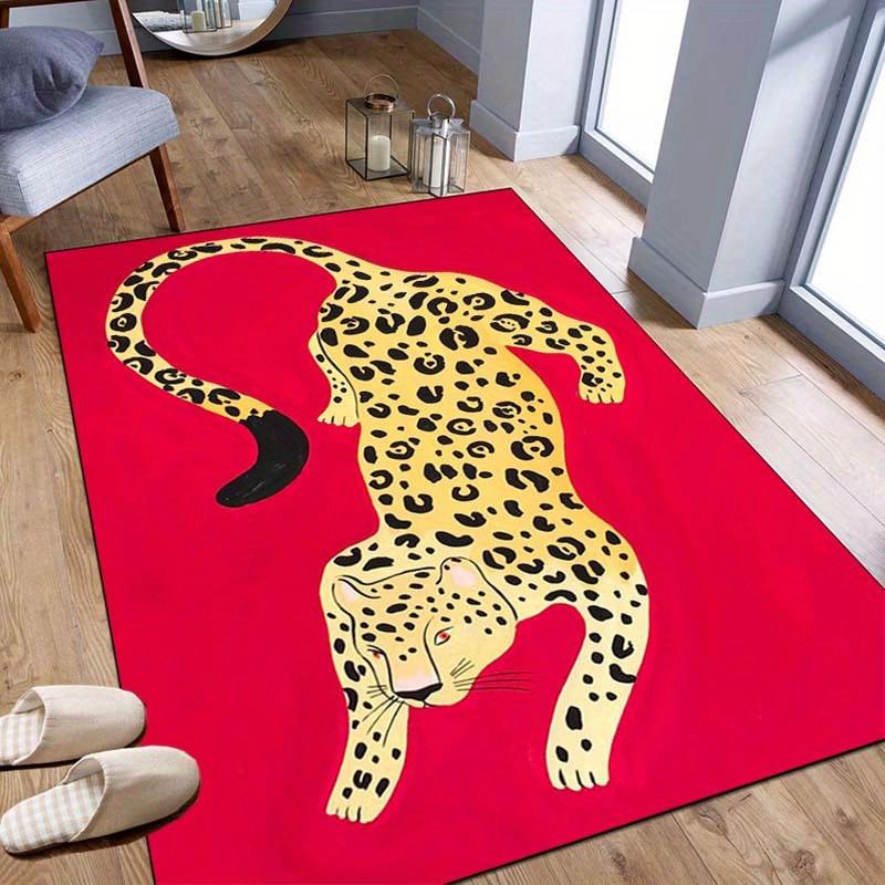Crystal Velvet 1pc Leopard Pattern Non Slip Carpet, Machine Washable And Fatigue Resistant Carpet, Very Suitable for