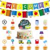 Students Start School, Classroom Decoration, Welcome Back, Pencil Ruler, Apple Flag Cake, Card Set