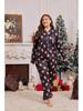 Indulge in cozy sophistication with this women's plus-size pajama set, perfect for the Christmas Autumn Winter Collection. This luxurious set features a lapel cardigan paired with long pants, crafted from soft artificial silk material that ensures comfort and elegance. The fabric incorporates milk silk for added smoothness and warmth, making it ideal for chilly nights. Designed with long sleeves, this set embodies a blend of style and functionality, perfect for relaxing at home during the festive season.