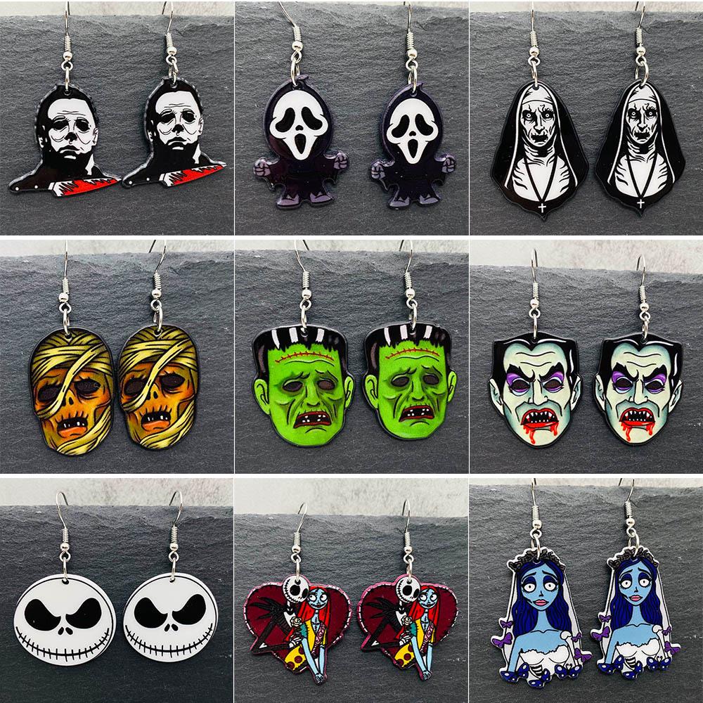European & American Halloween Earrings: The Nightmare Before Christmas Skeleton Acrylic Drop