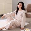 Coral Fleece Pajamas Women'S Autumn And Winter Long-Sleeved Casual Wear Thickened Fleece Flannel Loungewear Winter Suit