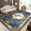 Luxury European Decorative Rug for Living Room Blue Inlaid with Gold Big Size Parlor Carpet Non-slip Washable Bedroom Decor Mat