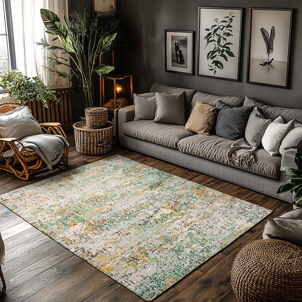 Green Bohemian Area Rug, Multicolor Geometric Pattern Non-Slip Carpet, Cozy Living Room Mat for Natural Home Decor