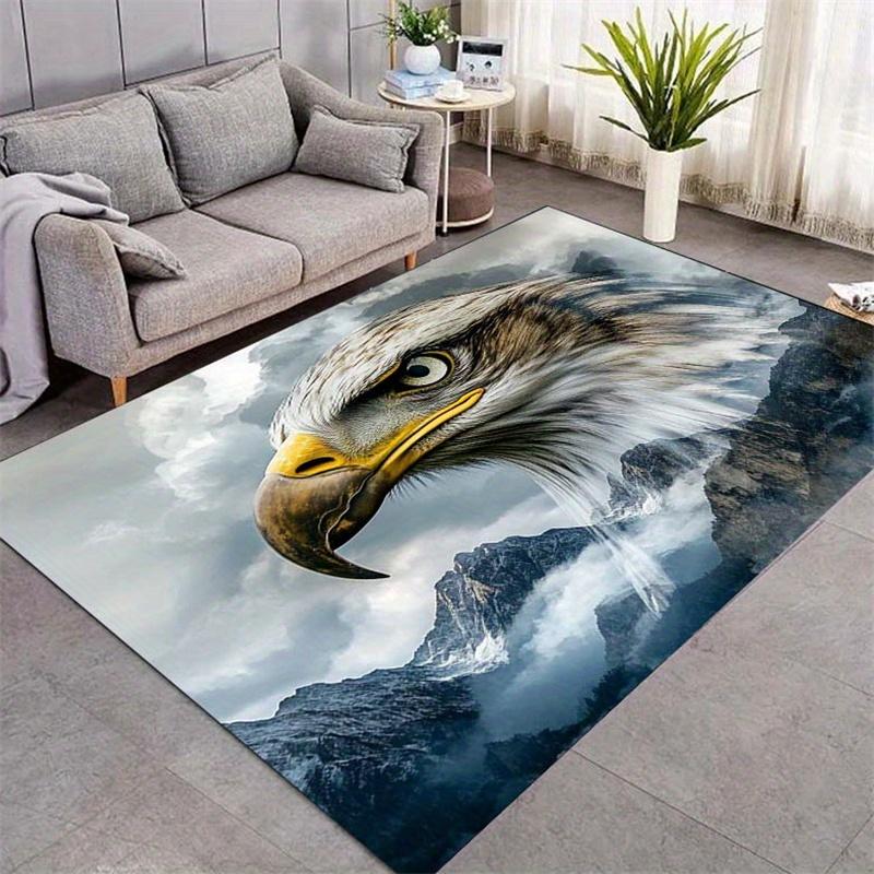 Large Eagle Head Digital Art Print Rug - Non-Slip, Machine Washable, Anti-Fatigue Polyester Carpet with Cloud and Mountain Desig