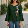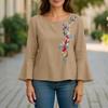 ZANZEA Women Round Neck Flare 3/4 Sleeve Casual Embroidered Blouse