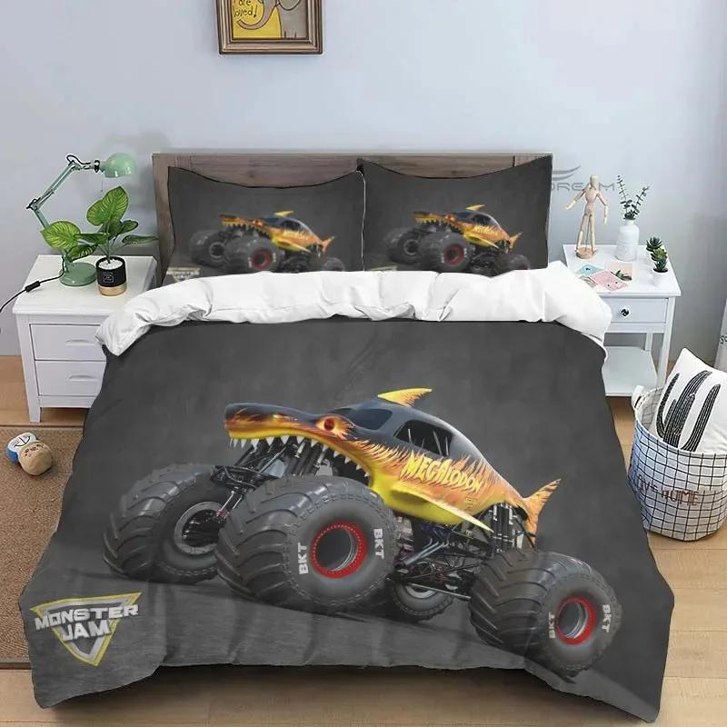 3D Super Monster Truck Monster Jam Comforter Bedding Set,Duvet Cover Bed Set Quilt Cover Pillowcase,King Queen Size Bedding Set