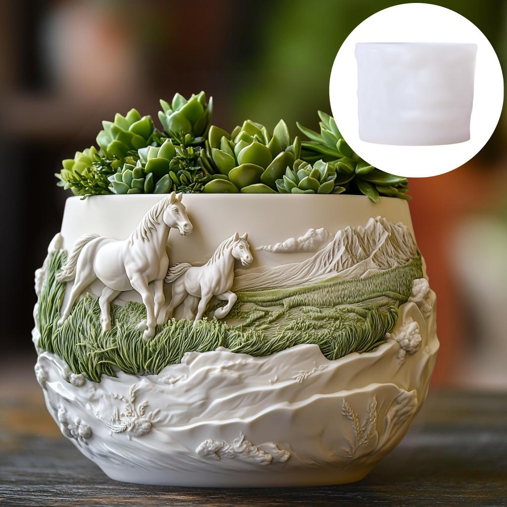 Running Stallion Relief Succulent Plant Flowerpot Resin Silicone Mold Grassland Warhorse Storage Box Mould Horse Gypsum Molds