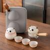 Panda Merchandise Side Handle a Pot of Three Cups Travel Tea Set Light Luxury Modern Suet Jade Porcelain Business Commemorative Gift