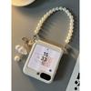 Flip Phone Case For Samsung Galaxy Z Flip 6 Zflip 5 4 Casing Elegant Pearl Pendant Bracelet Chain White Leather Cover Fundas