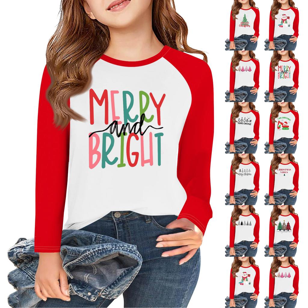 Girls Long Sleeve Christmas Day T Shirts Kids Fall Tops Crewneck Basic Tees 5-14Y
