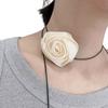 Fashion Silk Rose Flower Choker Necklace Long Lace-up Choker Temperament Neckband Jewelry Clavicle Chain Necklace