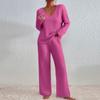 Women's Solid Color Stripe V-neck Long Sleeved Top And Pants Two-piece Set