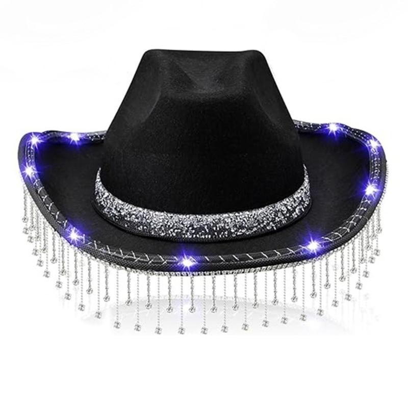Fringed Rhinestones LED Cowgirl Caps Glittering Powder Wide Brims Cowboy Hat Teens Fashion Nightclub Party Hat Photo Hat