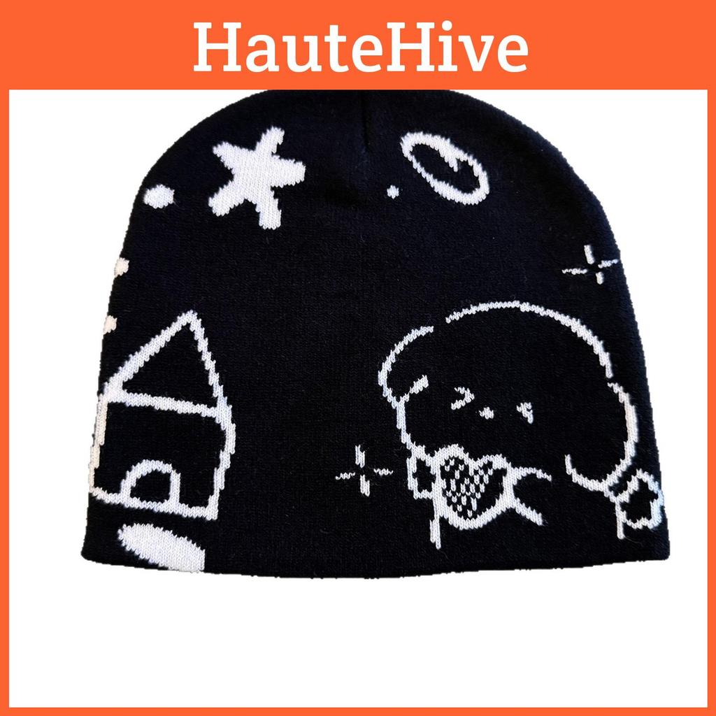 Kids Cozy Knit Hat With Fun Dog Emoji Pattern Warm Wool Headgear For Fall Winter Seasons