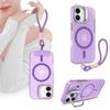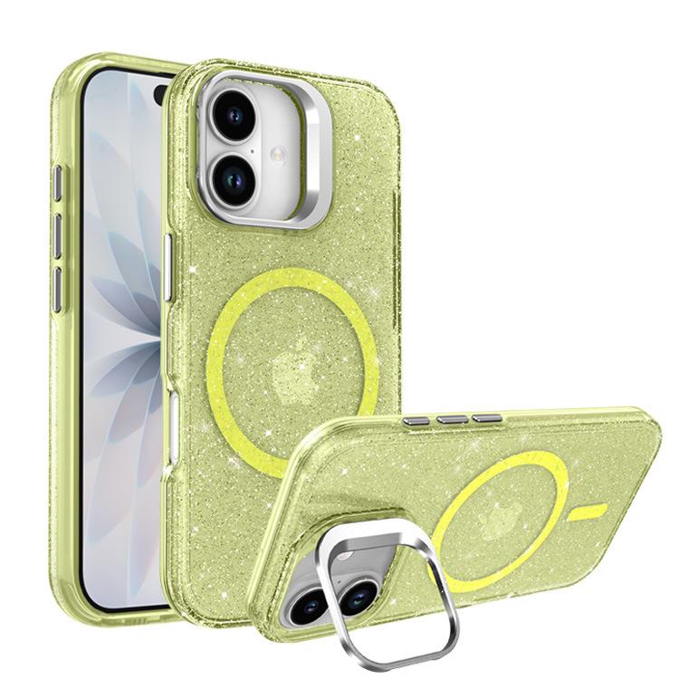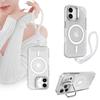 For IPhone 17 Glitter Phone Case PC Transparent Magnetic Bracket for Apple 15 Anti Drop Protective Case 13 with Hanging Rope