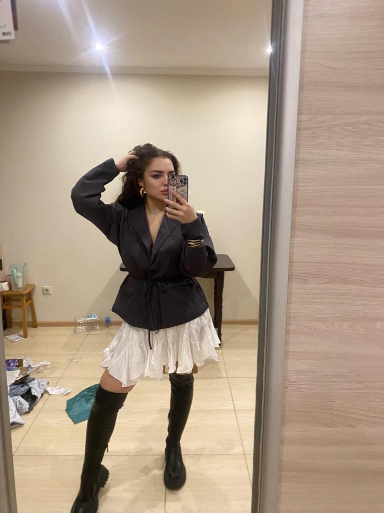 Design: This stylish blazer features a clean white color and a modern oversized, relaxed fit. The classic notched lapel and long sleeves create a sharp, structured silhouette that is both professional and fashionable.