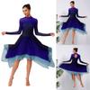 Lyrical Dance Leotard with Keyhole Back and Mesh Long Sleeves Women Gradient Dress Irregular Hem for Performance