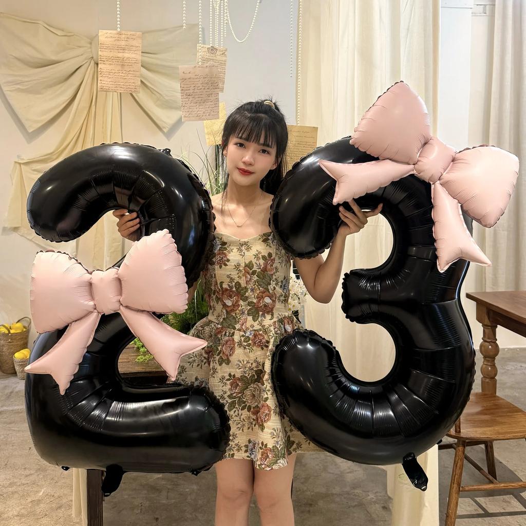 2pcs 40inch Black Bowknot Number Foil Balloons Photo Props Wedding Birthday Party Decorations Anniversary Decoration Number 0123