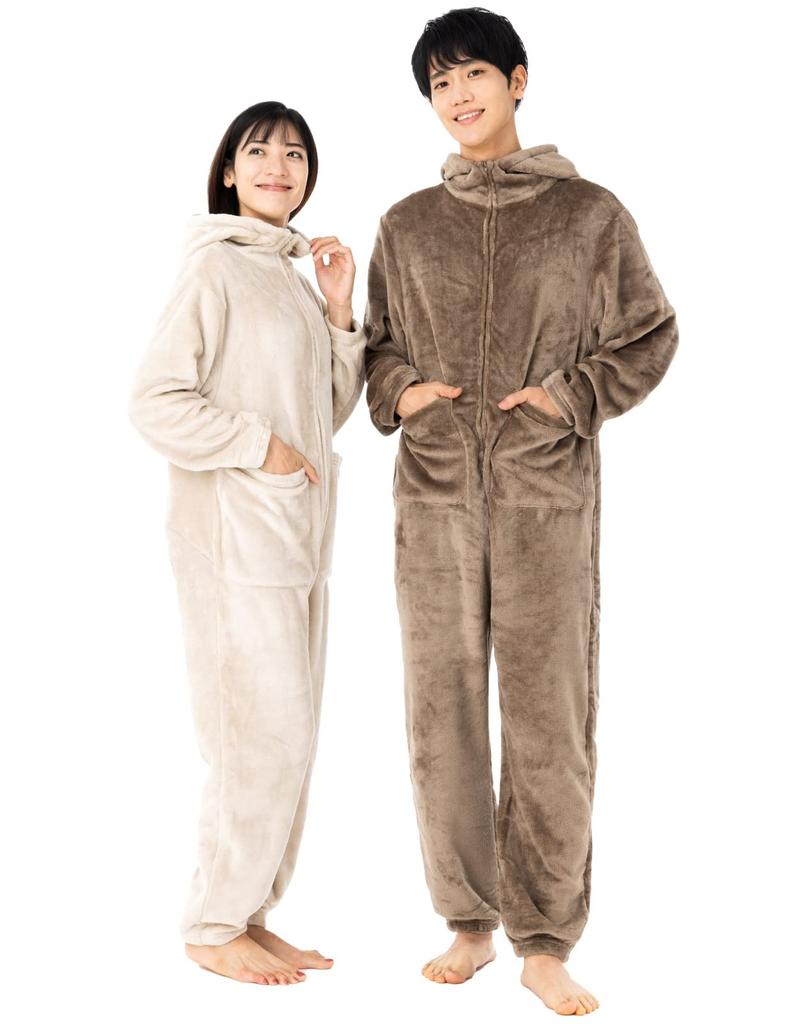 [Unisex Design, Chic Colors, and Two Sizes Available] This unisex flannel wearable blanket (one-piece type) is available in two sizes, M and L! It comes in chic, subdued brown and beige colors. It's pajamas that can be worn by people of all ages. The zipper at the hips also means you can wear it to the bathroom without having to take it off.
