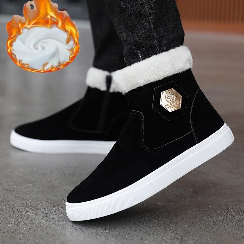 Winter Snow Boots Men Casual Slip On Ankle Boots Warm Fur Comfortable Sneakers Non-slip Flat Botas Men Shoes