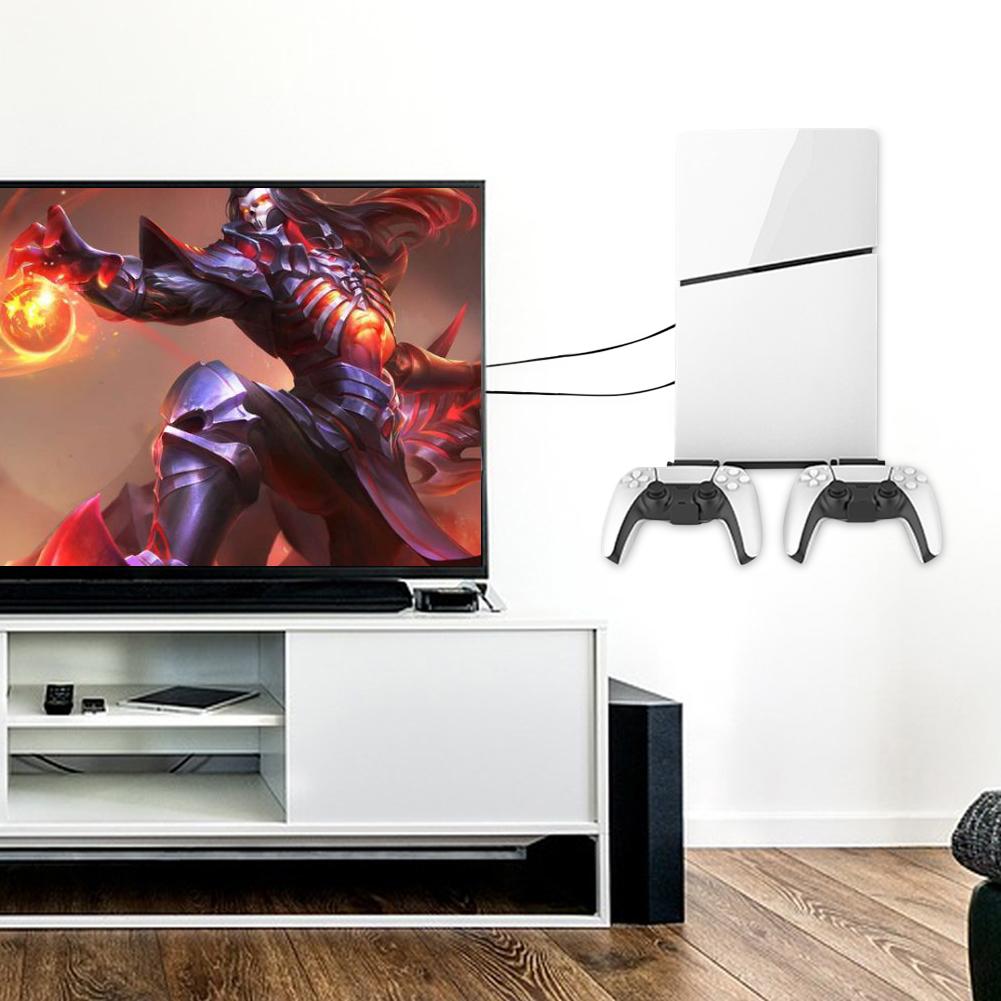 Wall Mount Bracket Display Stand Base with 2 Controller Mounts Wall Hanging Stand for PS5 Slim Digital Edition and Disc Edition