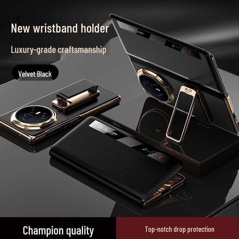 ModelVelvet Black Full-Flip Smart Window with Wrist Strap Stand