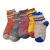 5 Pairs of Striped Versatile Mid Length Socks, Candy Colored Retro Color Blocked Outdoor Socks