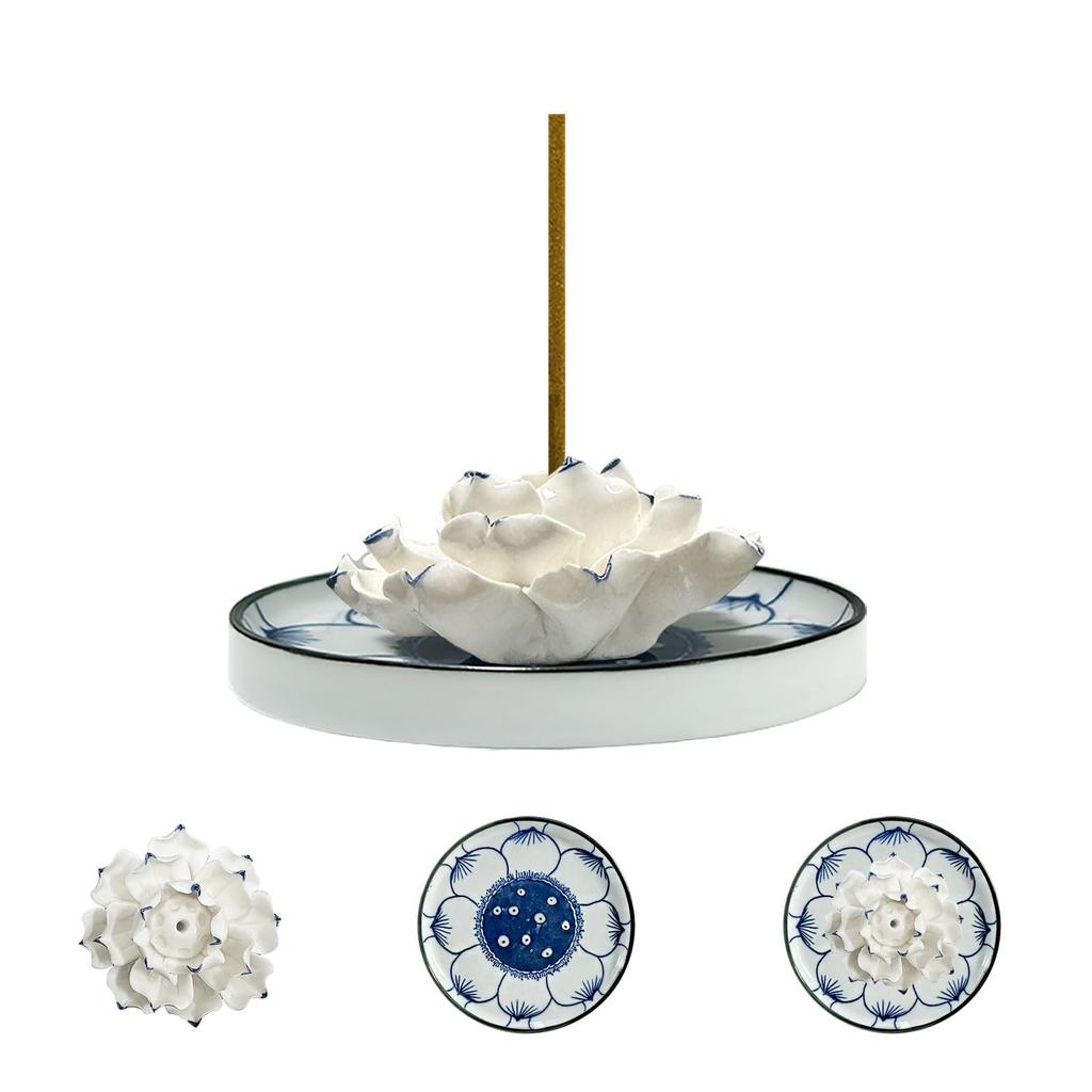 UTRISM Ceramic Incense Holder for Buddhist Altars, Multi-Functional Ceramic Incense Burner Suitable for Tea Rooms, Study Rooms, Meditation Rooms,
