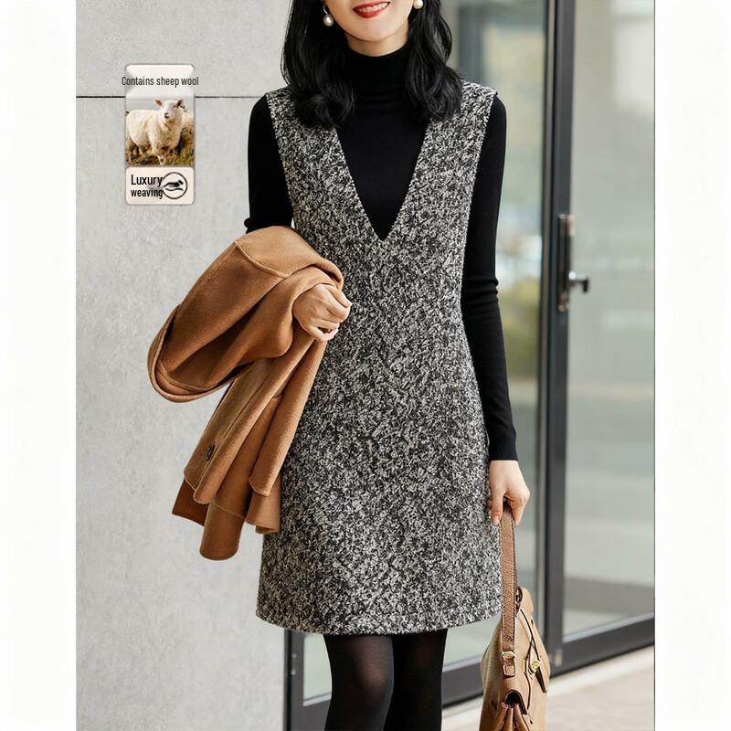 Demana Women's Deep V-Neck Lambswool Blend Boucle Sleeveless Dress