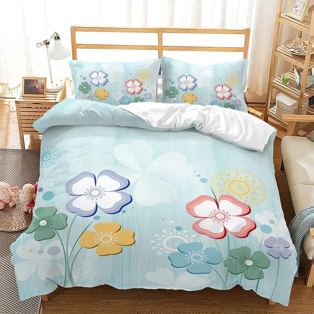 Lucky Green Leaves Four Leaf Shamrock Clover Comfortable Duvet Quilt Cover Pillowcase Bedding Set Children Bedroom Home Textile