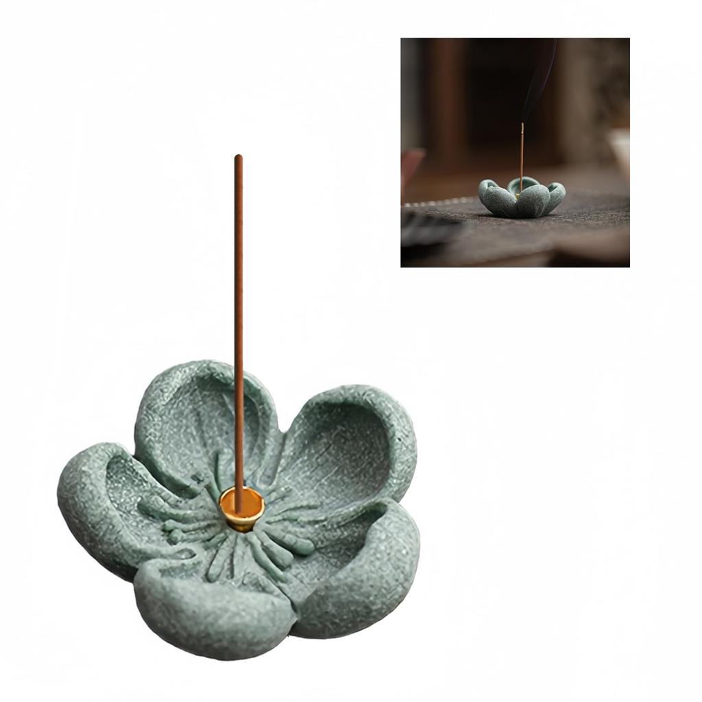 Moruna Incense Holder, Blue Sand Stone with Plum Blossom Design, Stylish Mini Incense Burner for Buddhist Altars, Japanese-Style Decor (Blue Sand