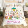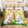 Kids Cute Rabbit Duvet Cover,Happy Easter Floral Bedding Set Twin King For Boys Girls,Lovely Animal Bunny Girly Comforter Cover