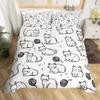 Girls Kawaii Cat Bedding Set Full Queen, Cute Kitten Comforter Cover Cartoon Duvet Cover Colorful Flowers Plant Bedspread Cover