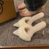 Fashion High Heel Fur Mule Slides Woman Elegant Pointed Toe Furry Slippers Ladies Luxury Plush Evening Party Pump Shoes