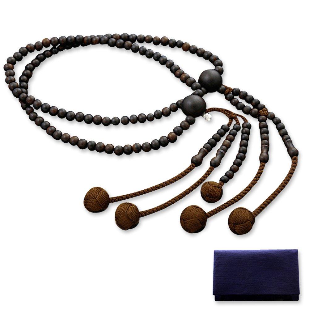 Kyoto Butsudan Hayashi Buddhist Prayer Beads, Nichiren Sect, 1 Shaku 2, Ebony (Unpolished) (Men's), Formal, Authentic Style [Prayer Beads Bag Set]