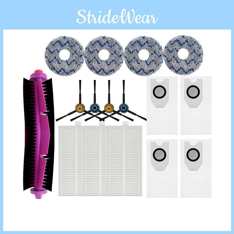 This replacement kit for Midea W11, V10, and V12 robot vacuum cleaners includes main brushes, side brushes, filters, cloths, dust bags, and cleaning liquids. Crafted from durable materials, Ideal for home use, these accessories ensure optimal performance and maintenance. Wipe with a damp cloth to keep components clean and functioning smoothly.