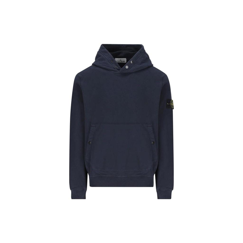 STONE ISLAND Solid Color Logo Hooded Long Sleeve Pullover Sweatshirt Men Sweatshirt Blue 791561720-V0020