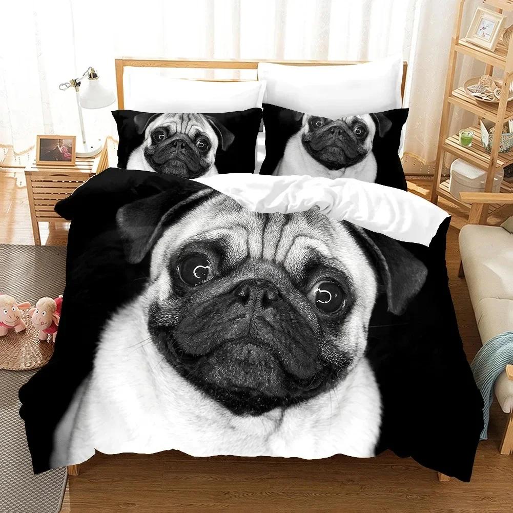 Lovely Pug Dog Animal Happy Dogs Comfortable Duvet Quilt Cover Pillowcase Bedding Set Children Bedroom Decoration Home Textile