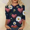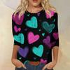 Women's Fashion Casual Round Neck Three-quarter Sleeve Carnival Print T-shirt Top